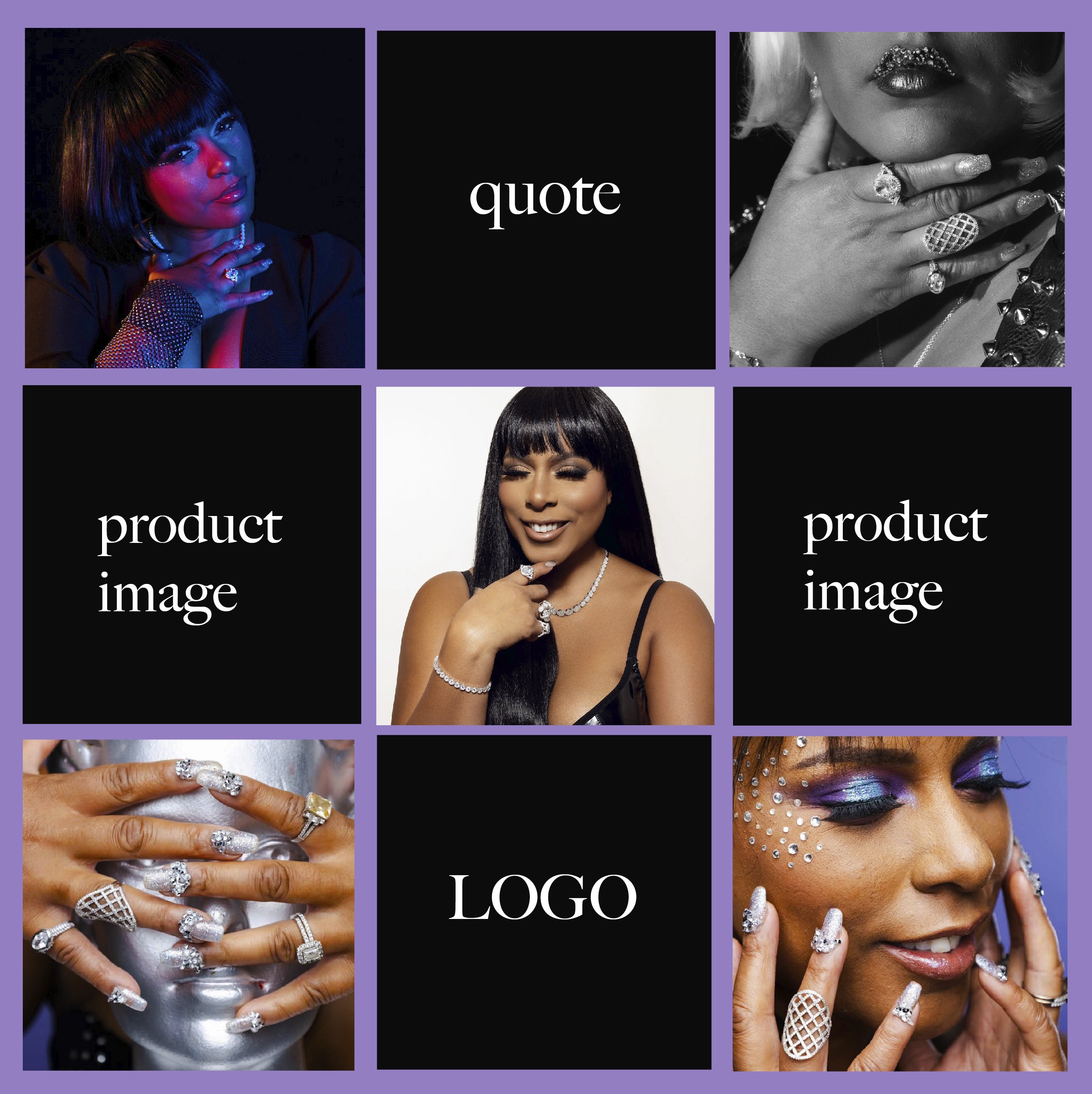 After receiving the finished photographs from the previous shoot, I would begin designing social media grid-layouts. I designed various prototypes of social media grid-layouts. These grid designs included product photos, images containing the logo and company branding, Behind-The-Scenes videos from the photo shoots, Product Teaser videos, a message from the brand CEO, etc).